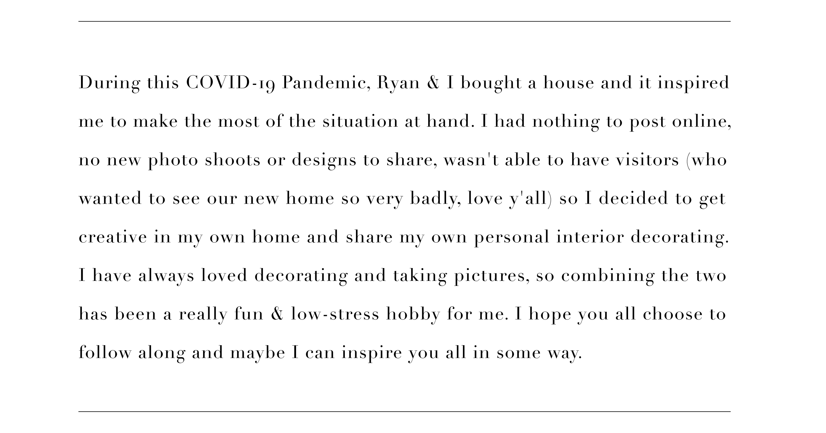 Hey I’m Shania, welcome to our crib! Ryan & I moved here in March 2020 just as the lovely pandemic was starting and we have done a few things to spice up this place. I am always looking for home inspiration, so if you guys see something cool, definitely tag me in it.